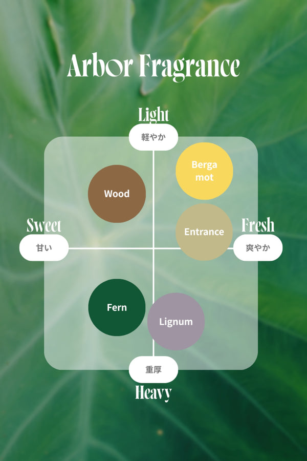 ラベンダーは、数多くの国から愛され広く知られている特別な香りです。Arborでは、ラベンダーと相性の良いシダーウッドを配合し、より親しみのある香りに仕上げました。