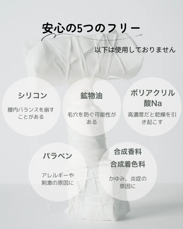 ✔︎国産オーガニック由来指数95.9% 植物由来指数98.3% ✔︎保湿、抗酸化抗炎症が期待できる国産のハス花水、クインスシードエキスを使用 ✔︎膣内のバランスを崩さない弱酸性 ✔︎シリコン、パラベン、合成香料、合成着色料、鉱物油、動物由来原料 不使用 ✔︎使いやすいポンプタイプ ✔︎クルエルティフリー ✔︎ヴィーガン処方 ✔︎旧指定成分不使用の無添加処方 ※水を含む、ISO16128準拠