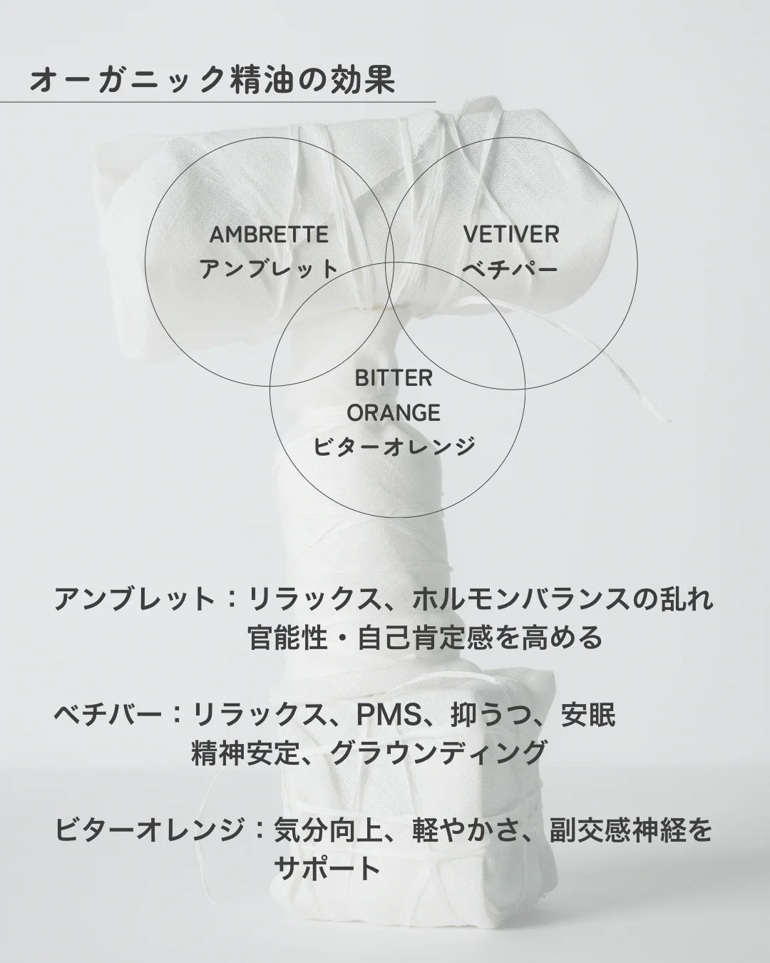 森で深呼吸するような、透き通った印象のリラクシーな香りが緊張をほぐします。