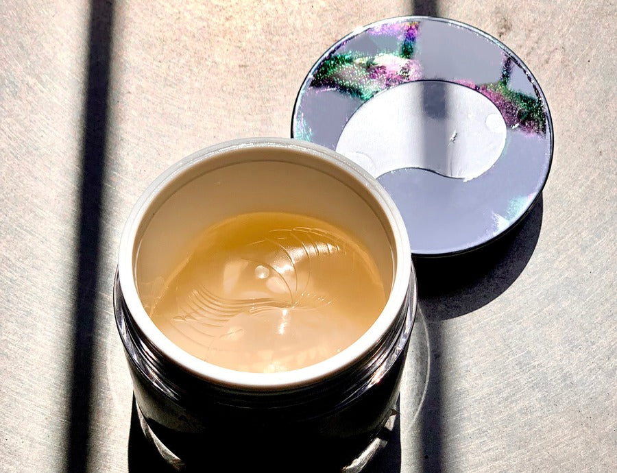 新素材ジェルとして、近年、インナーケアとしても注目を浴びている藻の一種である、アカモクから抽出したエキスを独自処方でハイドロ化に成功。その中に各種美容成分を閉じ込めました。特徴が従来のバイオセルロースの数倍以上の保湿力とストレッチ力にあります。