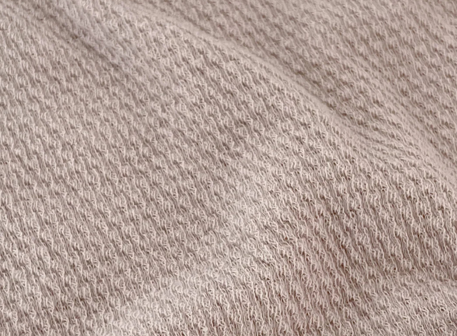 「エンバランス糸」とは、“ 遠赤外線効果 ”と“ 消臭効果 ”のあるテクノロジーをポリエステル糸に搭載した高機能繊維。waffle haramakiは、このポリエステルとコットンを独自のバランスで配合した混紡糸を採用しています。