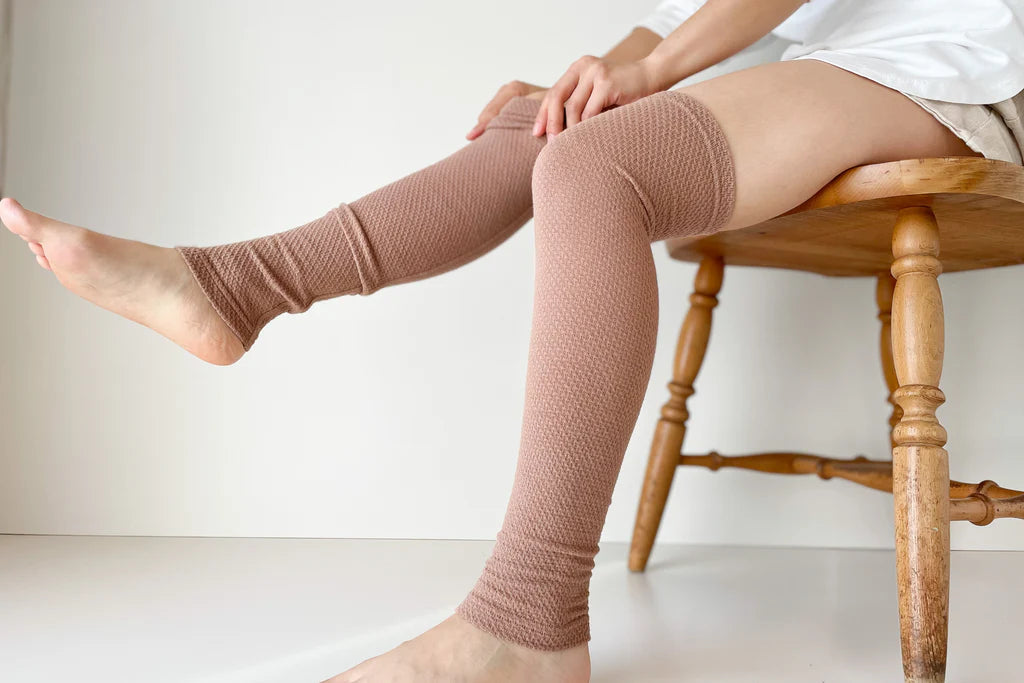 じんわりとあたたかく、優しく足もとを包みこむロングレッグウォーマーです。